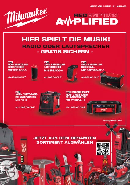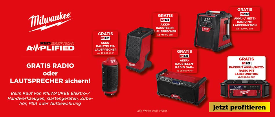 Mehr Power für deine Baustelle – und jetzt auch der passende Sound dazu! Mit der neuen Milwaukee Promotion „Redemption Amplified“ sicherst du dir beim Kauf von Milwaukee Produkten eine attraktive GRATIS-Prämie.